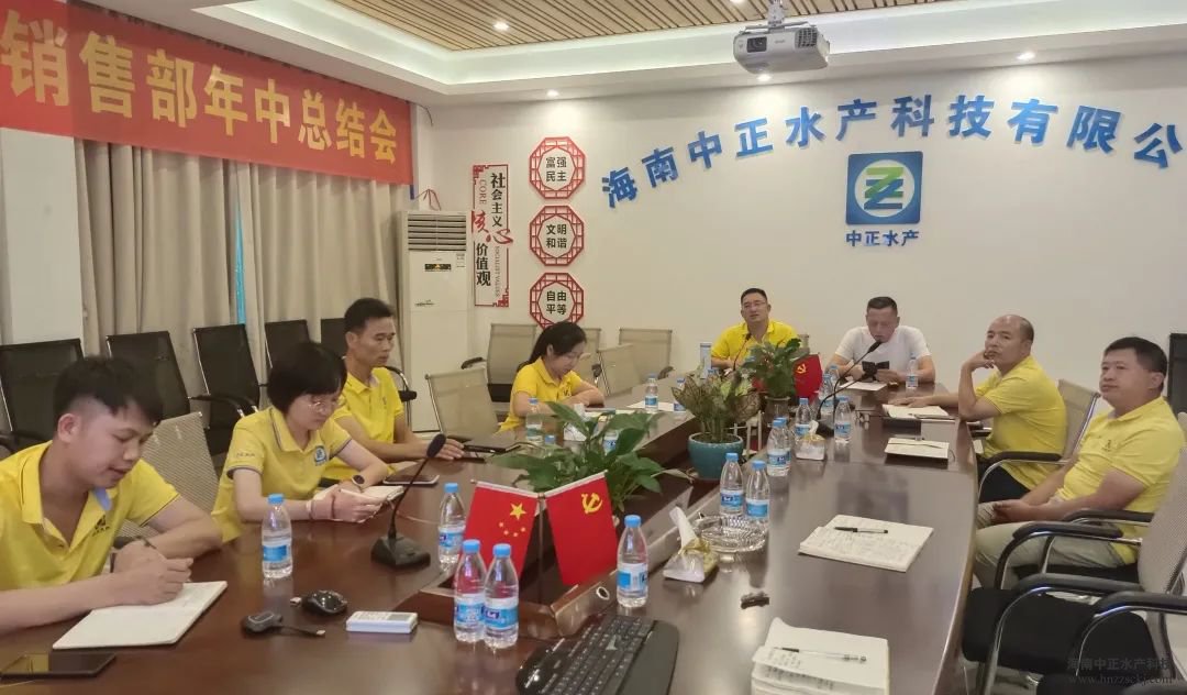 会议上,环渤海区、江浙区、福建区、两广区等销售精英们依次汇报工作,对2022年度上半年工作目标完成情况及市场动态、产品养殖效果、市场客户需求等进行了针对性的总结、探讨。